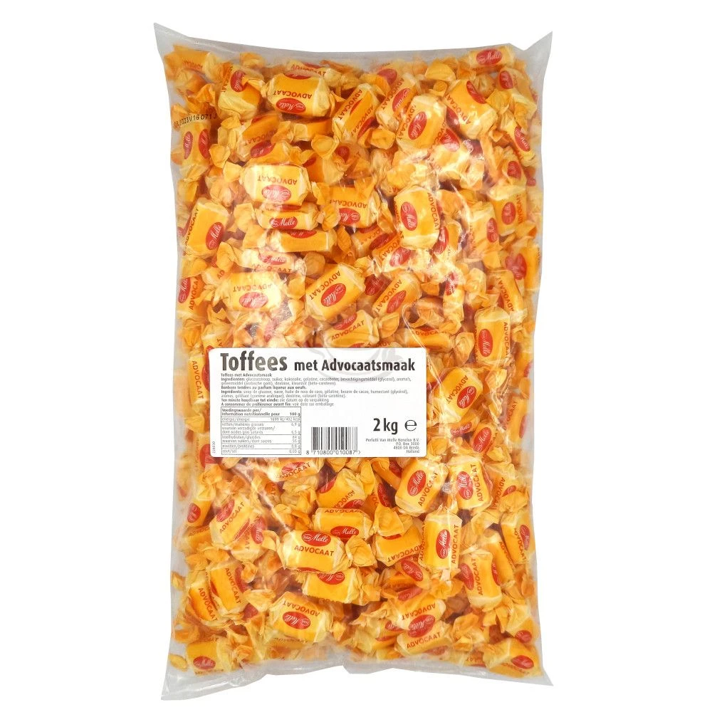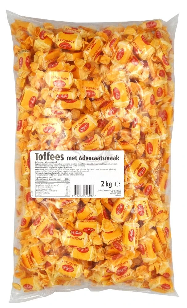Van melle avocado toffees is a delicious delicacy to take with you on the go. The avocado toffees are packed individually, so they are convenient to take with you. The large bag of 2 kilos ensures that the toffees do not run out quickly.